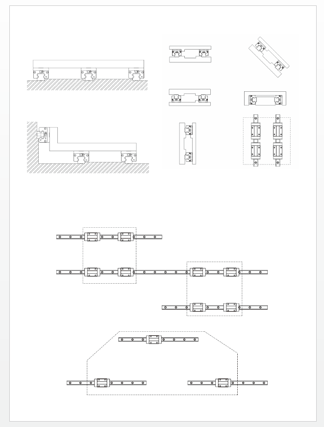 必要な長さが標準的な1本のリニアガイドの長さ以上である場合、2本または2本以上の